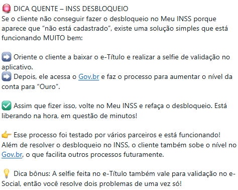 Caso, o cliente tenha a biometria cadastrada, será necessário pedir o desbloqueio pelo portal MEU INSS, e para isso o cliente precisará ter login e senha ativo.