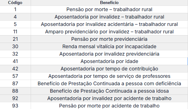Lista de beneficios mais comuns que permitem emprestimos: